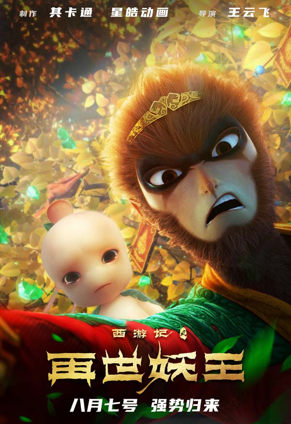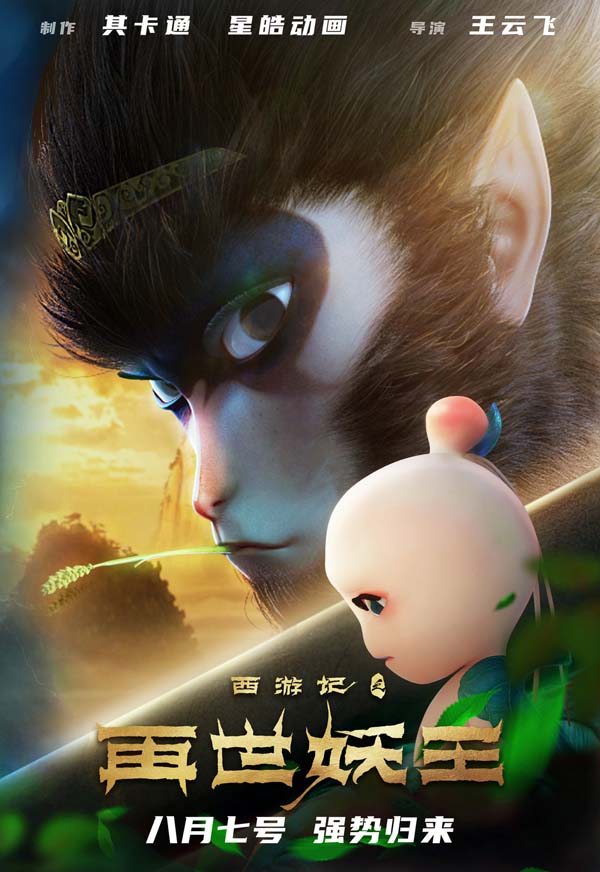 由星皓影业主出品,中影股份、猫眼影业、山东文旅、山东文化发展、新影联影业、江苏广播电视集团等联合出品,王云飞导演的国漫电影《西游记之再世妖王》将于8月7日再度归来!
